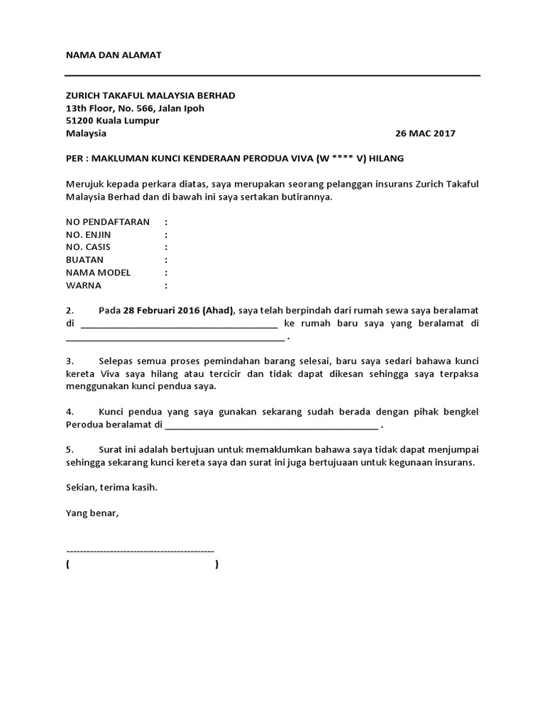 Surat Makluman Kunci Kereta Hilang Draft Pdf